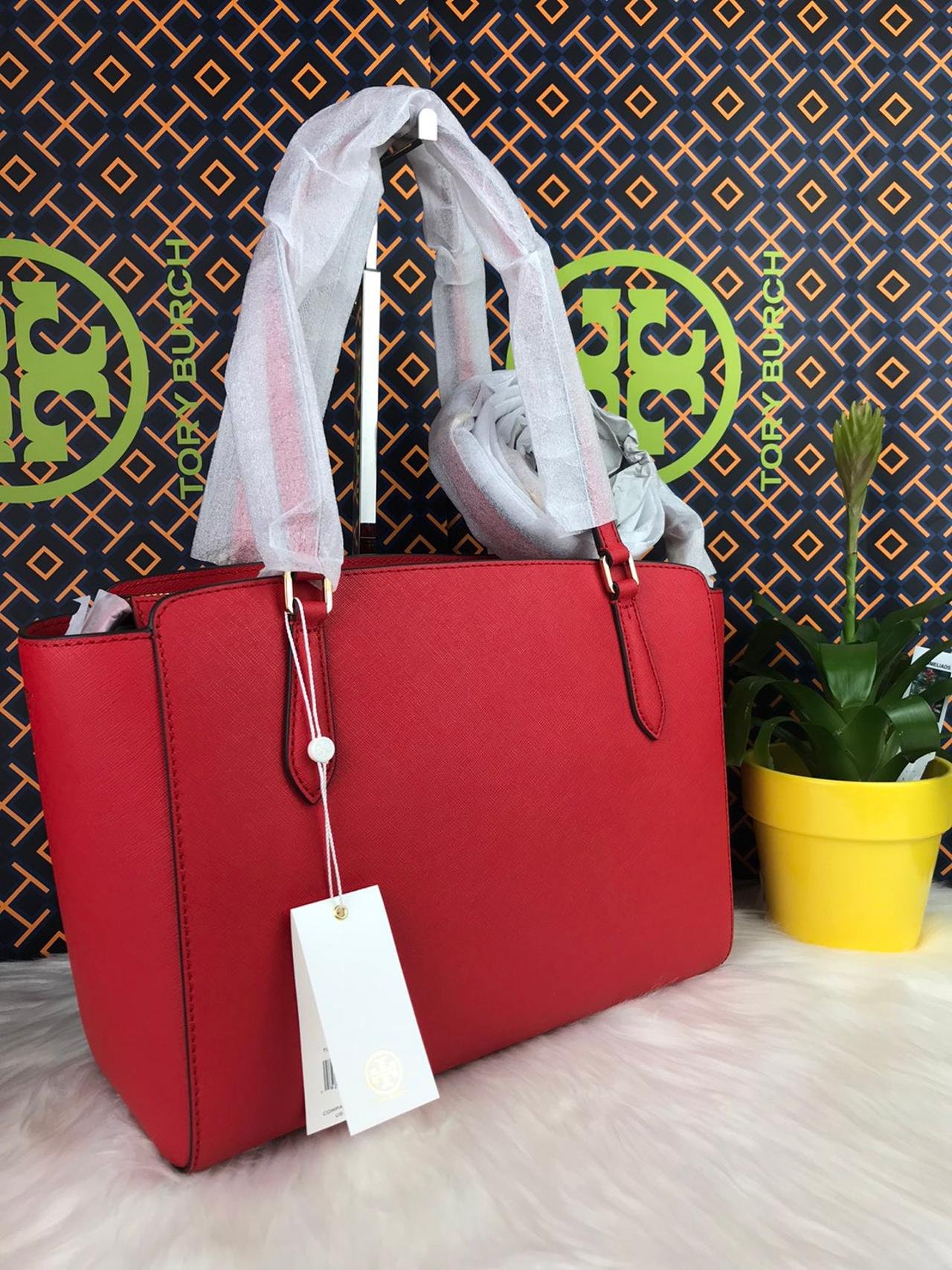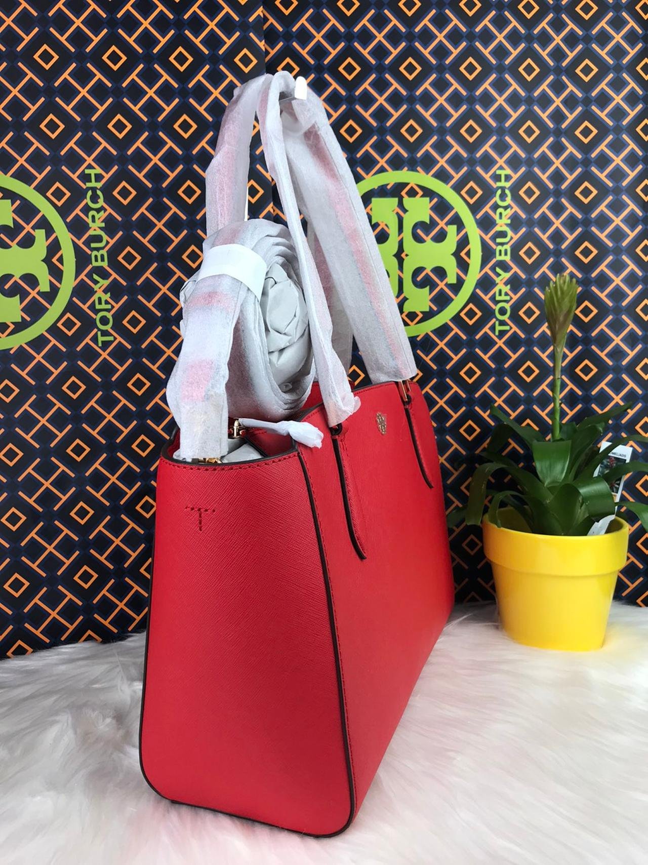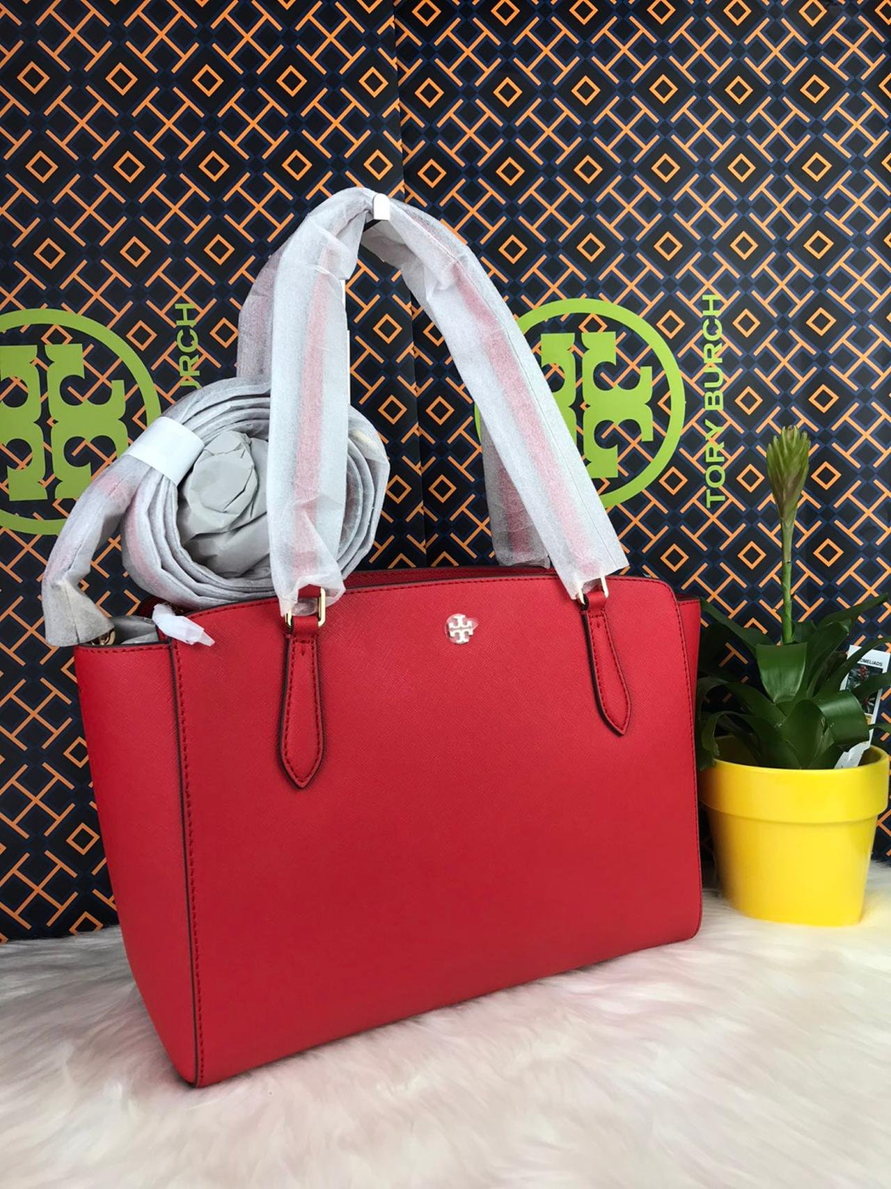 Tory Burch Emerson Saffiano Tote in Brilliant RedTory Burch Emerson Saffiano Tote in Brilliant Red
